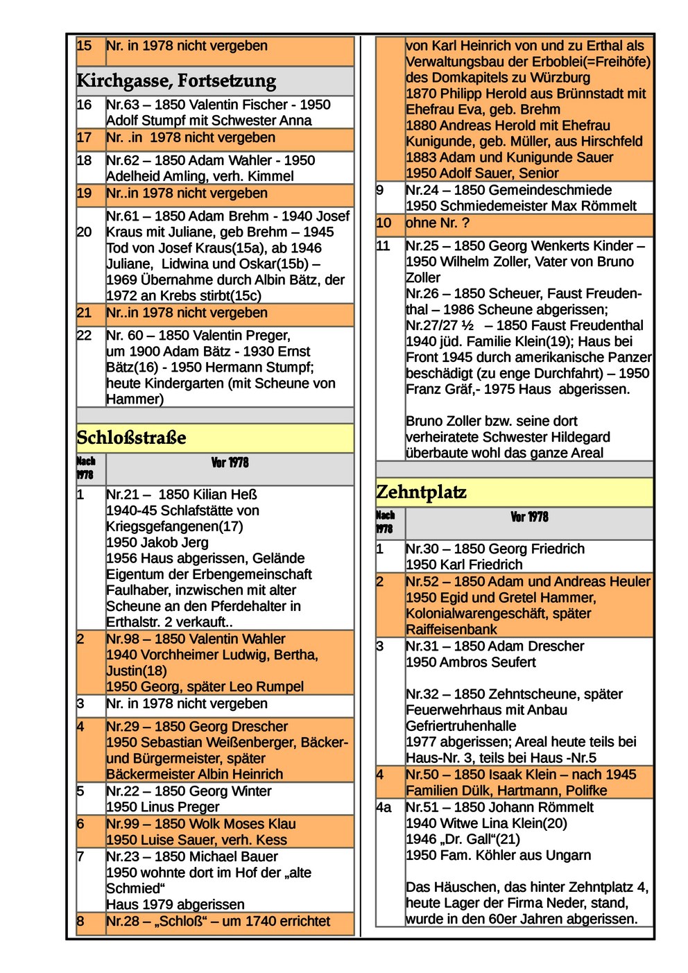 (15a) Josef Kraus, ein Kriegsteilnehmer des 1. Weltkriegs, sollte beim Kampf der Alliierten um Schweinfurt am 7. April 1945 – vier Wochen vor Kriegsende – von Granatsplittern getroffen nach langen Leiden am 20. Juni 1945 im Luitpold-Krankenhaus in Würzburg sterben. Nach Flugrichtung der Granate – aus Richtung Schweinfurt, am Kirchturm vorbei in Krausens Scheune – könnte es eine Granate der deutschen Abwehr gewesen sein, die Josef Kraus den Tod brachte.