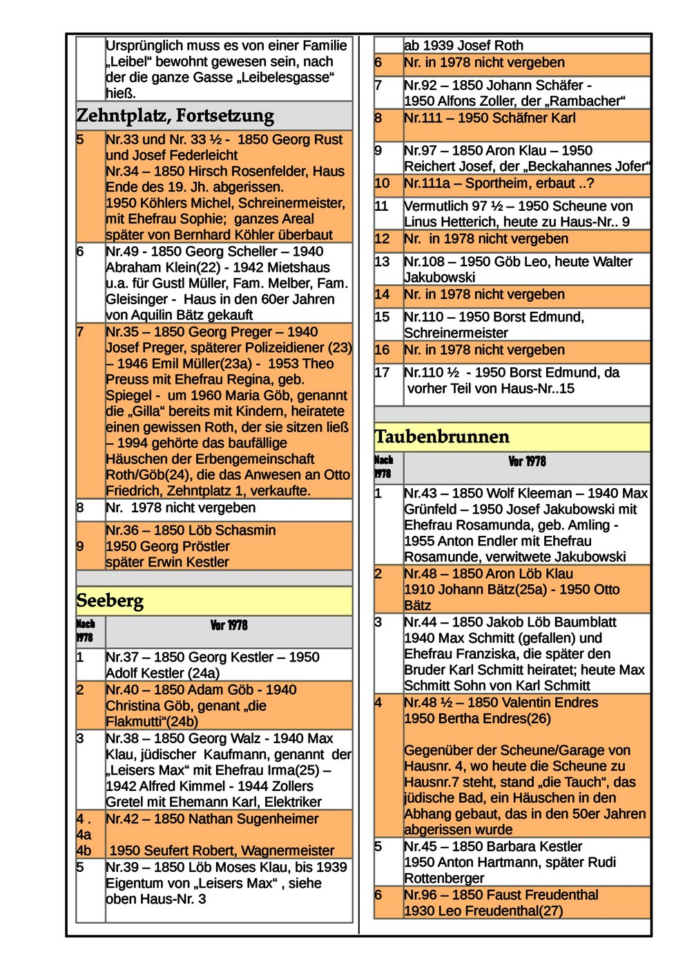 (16) Ernst Bätz verkaufte 1936 das einstöckige Häuschen seines Großvaters, Adam Bätz, genannt „Wagners Odel“ an Hermann und Emilie Stumpf und kaufte das Anwesen des Leo Freudenthal, damals Nr.96, heute Taubenbrunnen 6.